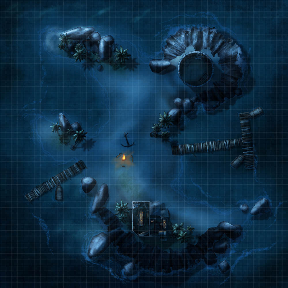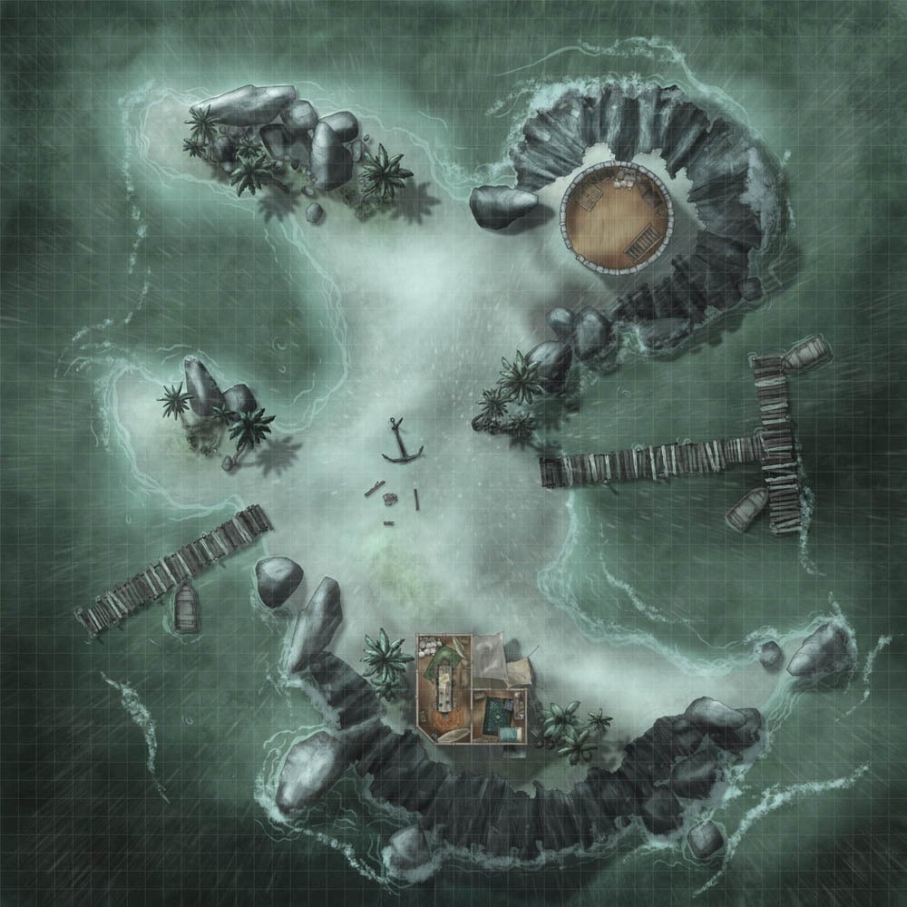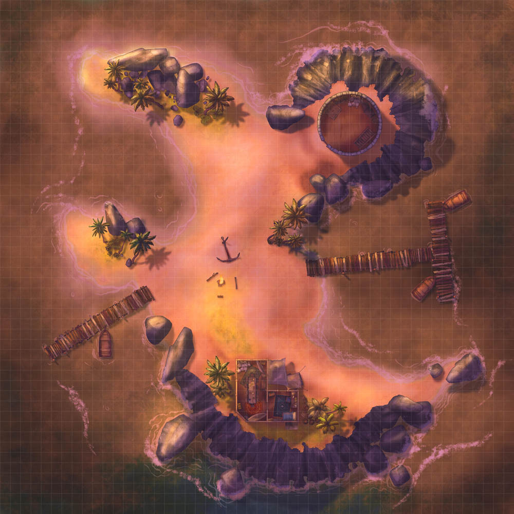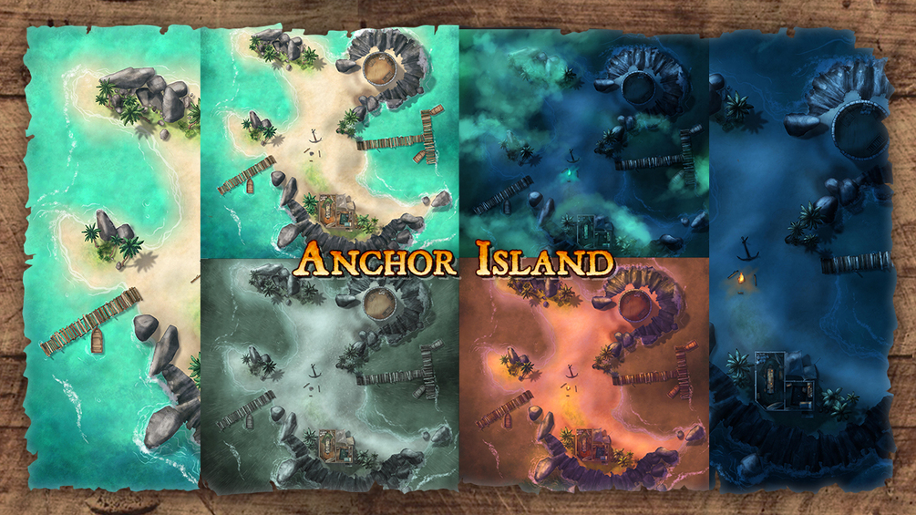 In any seafaring campaign, you'll need all sorts of ships. Once those have been gathered, you need destinations for them to visit, and the most used of these? Islands! Cursed ruins abound, tropical beasts can lurk behind every tree, and the players are positive there's a treasure chest buried somewhere nearby. So, as the first of a series of island maps designed to fill this need, I created the Anchor Island map set!